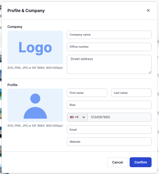 2. Profile & Company: This tab allows users to edit the personal and company information that shows as default for all Presentations that are created. Past presentations will not be affected by changes here.